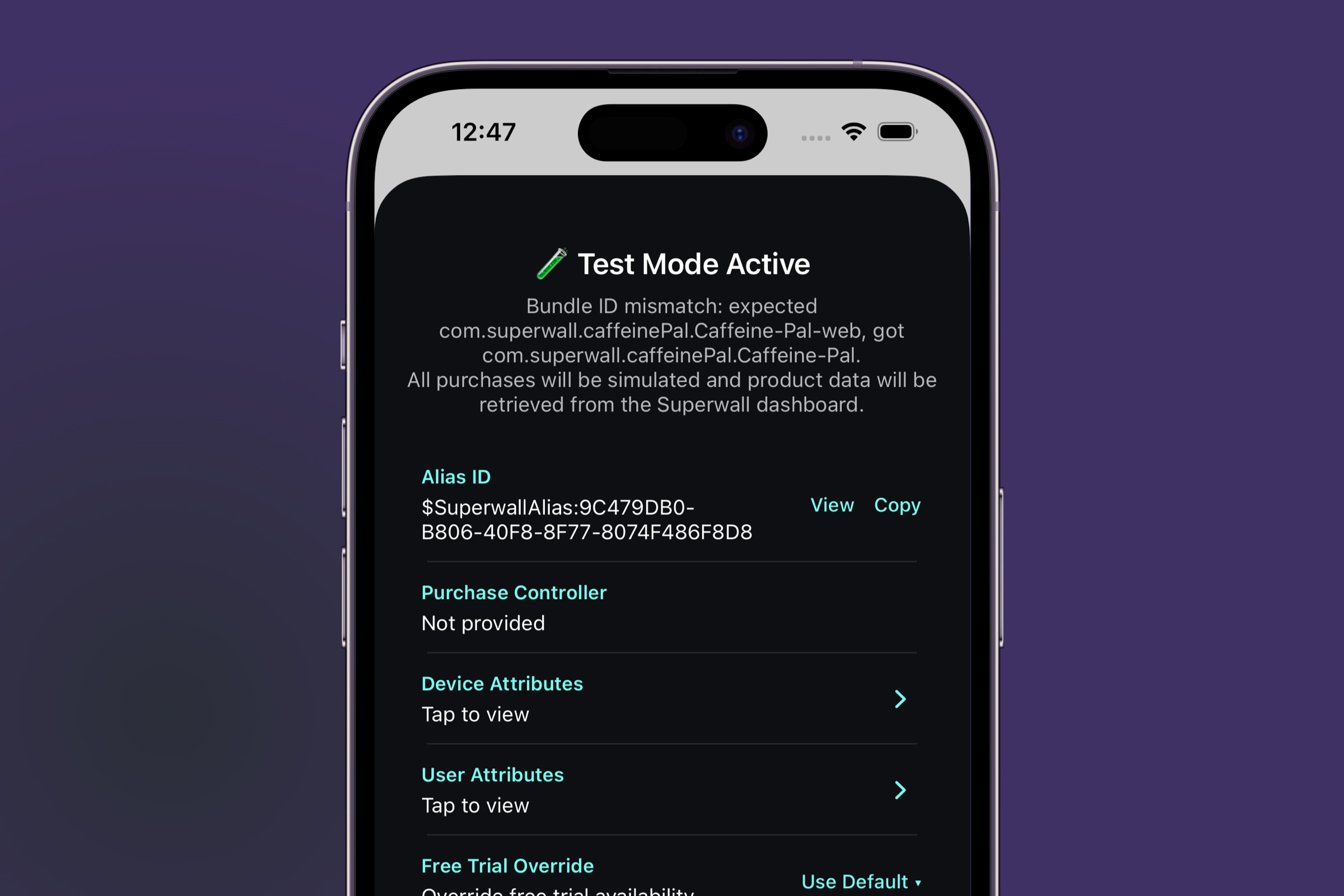 Simulate in-app purchases without StoreKit using test mode, which lets you test your entire paywall flow end-to-end.