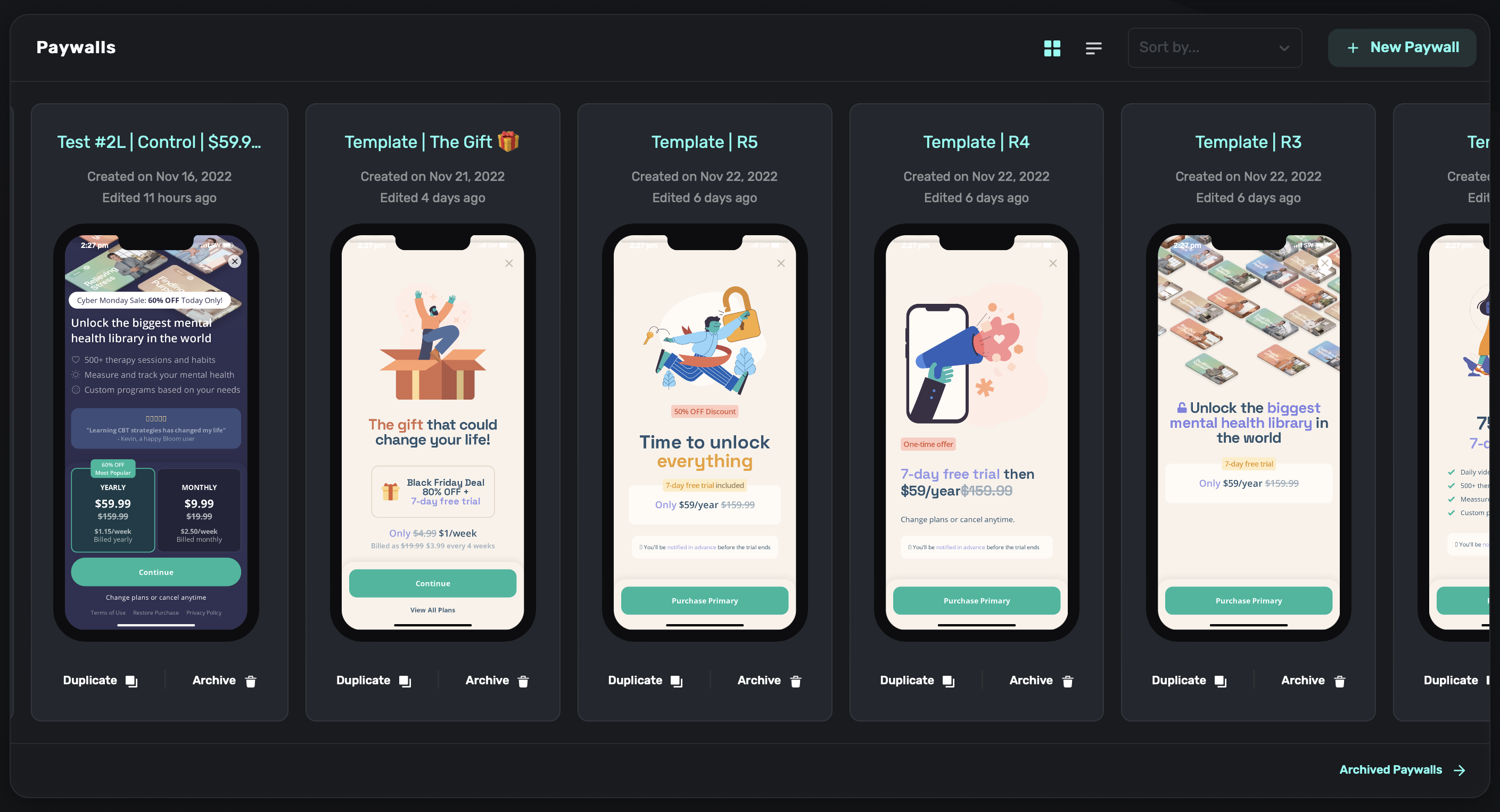 Here's what your Paywalls section might look like at scale.
