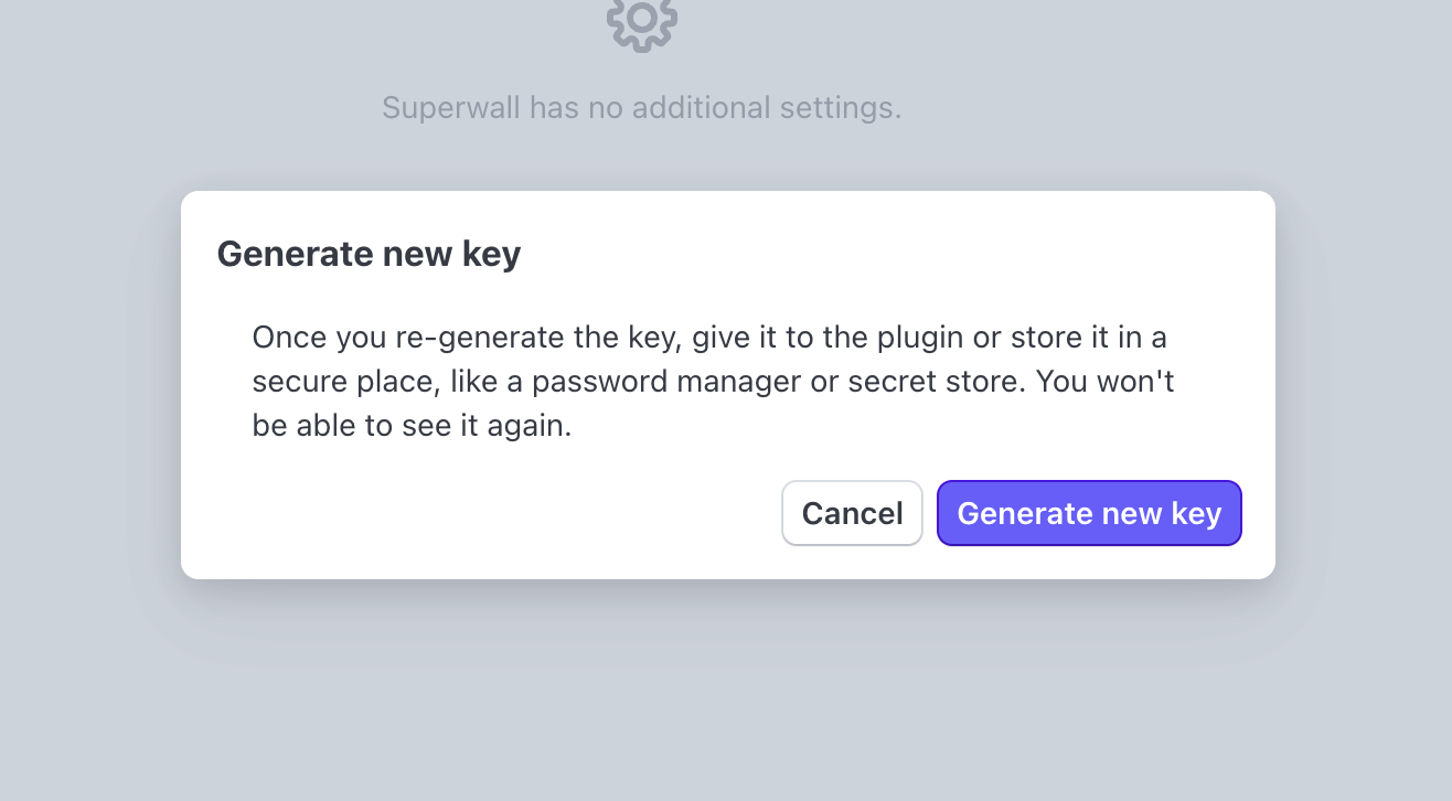 After installation, you'll receive a Publishable Key and a Restricted Secret Key with the proper permissions already configured. Copy both keys: